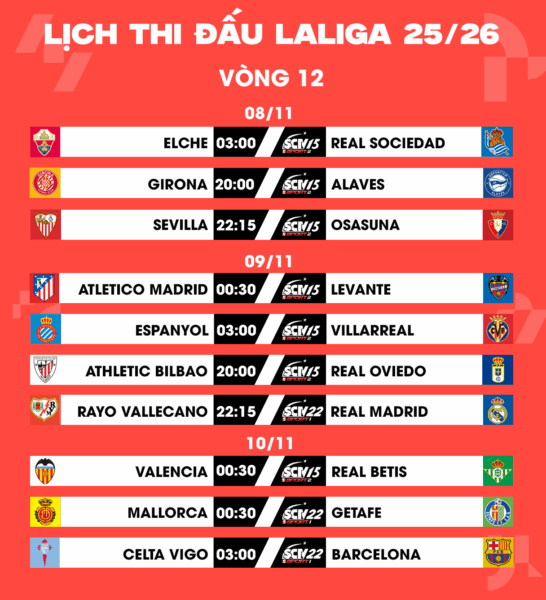 SCTV THỂ THAO: TÂM ĐIỂM VÒNG 12 LALIGA EA SPORTS 2025/26